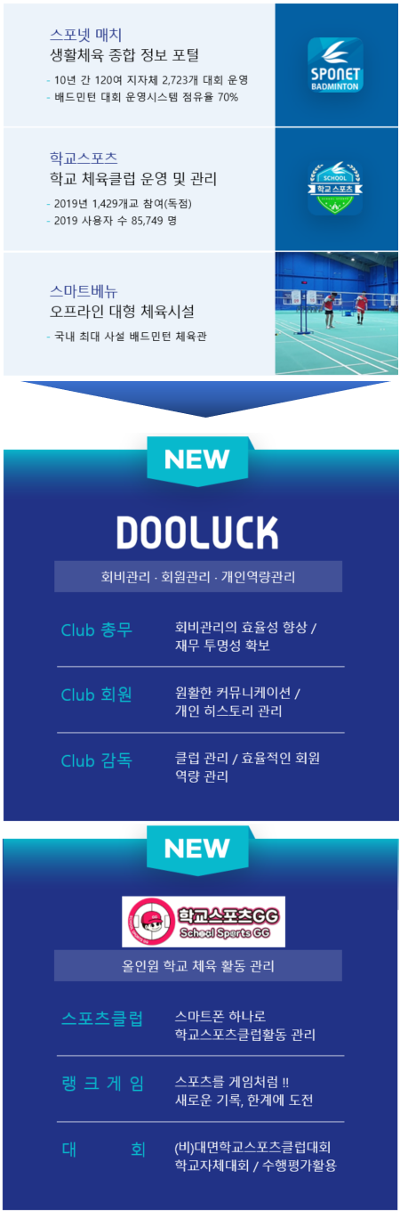 선불전자지급수단 발행 및 관리 : 스포페이 머니와 스포츠건강 상품권 발행 및 관리, 해외 골프 결제 시스템, 두럭(스포츠동호회) 운영 프로그램 제공